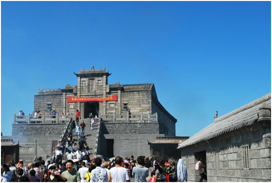 旅游車在衡山十八彎的盤旋下,把我們帶到了半山腰——南天門!祖師殿的右側(cè)有“壽比南山”石刻,是聳立于南天門脊梁之上的著名石刻,是南岳衡山眾多石刻中的杰作。石刻高為3.99米,3米99即為生命長(zhǎng)久、壽比山高,南岳衡山庇佑普天大眾“壽比南山”之意。